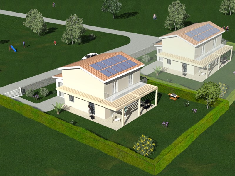La costruzione sarà interamente in bioedilizia, ovvero presenterà struttura portante in legno e coibentazione in canapa e calce e risulterà energeticamente autosufficiente grazie all'installazione dell'impianto fotovoltaico (non è previsto l'allaccio del gas!).
