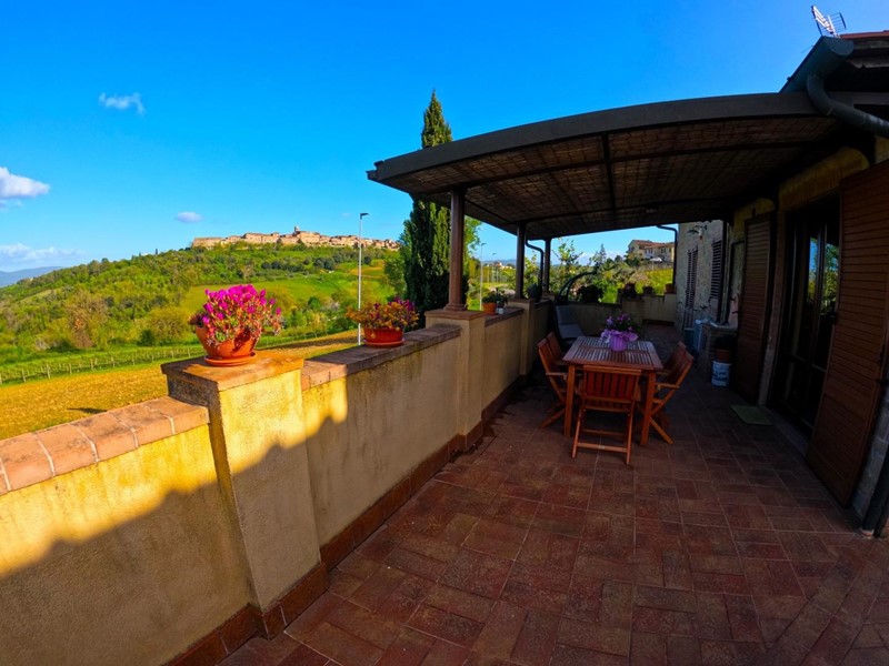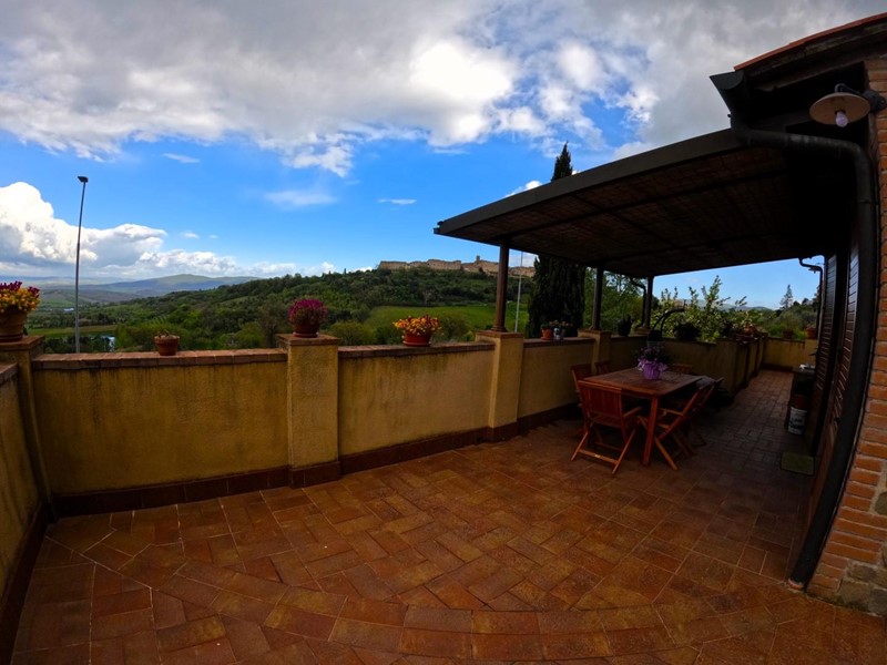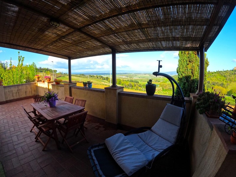 Bellissimo terrazzo con tettoia con vista panoramica su Casole d’Elsa.