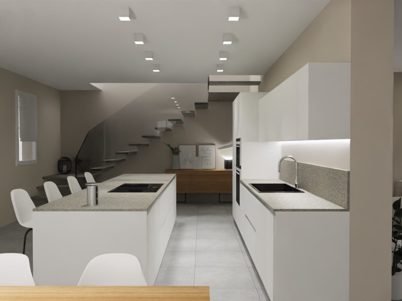 - al piano terra cucina/soggiorno in open-space, lavanderia, bagno e giardino