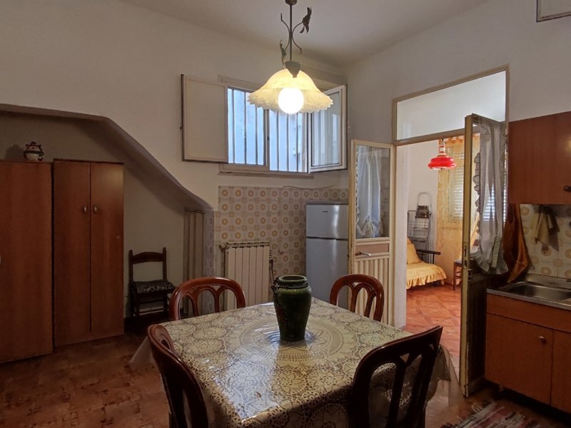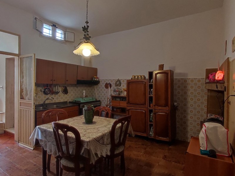 L'abitazione, di quasi 140,00 mq distribuiti su due livelli, si compone di un'ampia cantina al Piano Seminterrato avente tre vani, dei quali due con volta 'a botte', ed ingresso agevole dalla strada e dallo spazio esterno retrostante della casa. Al Piano Rialzato troviamo un vano con volta 'a stella' suddiviso in due ambienti, che fungono rispettivamente da ingresso/salottino e, grazie ad un comodo ammezzato, camera da letto; un altro vano 'a stella' funge da camera da letto matrimoniale, poi troviamo la cucina, il bagno ed un vano pluriuso. Completa la proposta immobiliare uno spazio scoperto retrostante, grande abbastanaza da essere comodamente fruibile nella bella stagione.