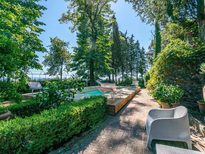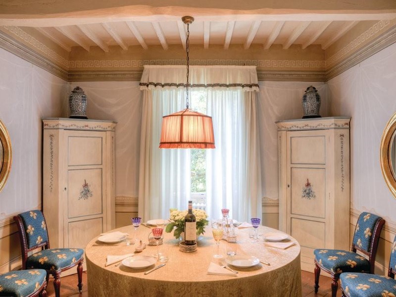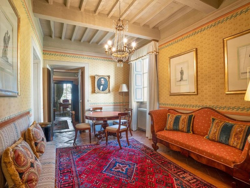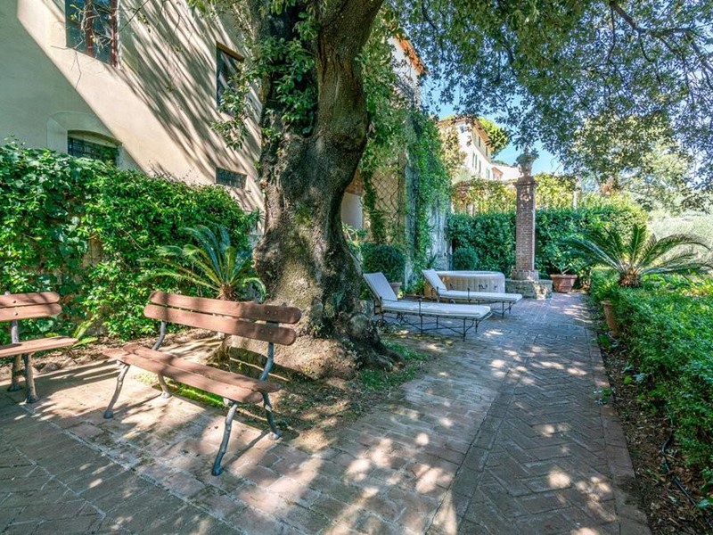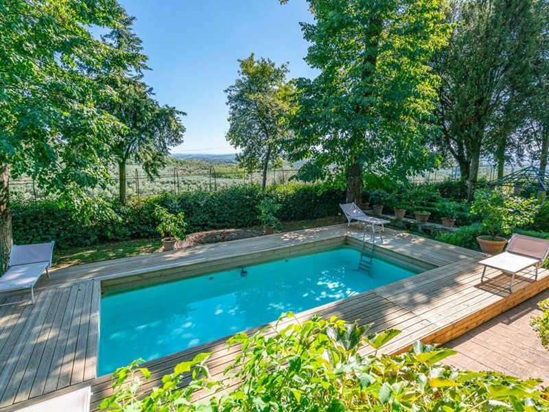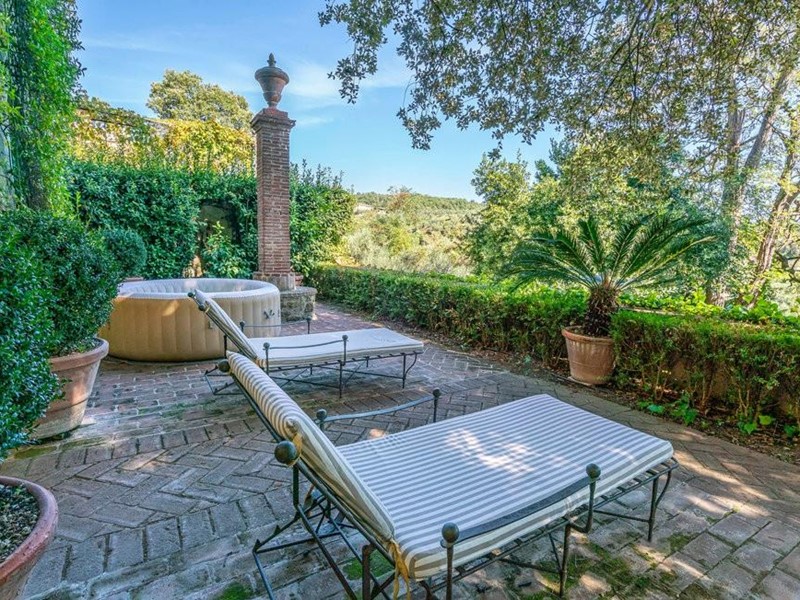 SULLE COLLINE FRA LUCCA E FIRENZE, all'interno di un caratteristico borgo medioevale, porzione di VILLA PADRONALE molto signorile con splendido giardino esclusivo all'italiana e piscina dove poter ammirare lo splendido panorama toscano.
