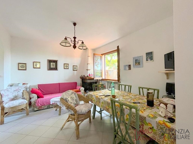 Gualdo: graziosa villetta con giardino e posto auto in posizione dominante ed in zona tranquilla si distribuisce su un unico piano oltre a mansarda. Al piano terra troviamo un piccolo portico in entrata con attrezzatura da giardino, soggiorno con caminetto angolo cottura e zona pranzo, ripostiglio-dispensa, apertura di servizio sul retro e bagno. Al piano mansardato ampia camera matrimoniale, cameretta-studio e balcone con vista mare, bagno. - Maggiori Dettagli: Porta blindata, Camino