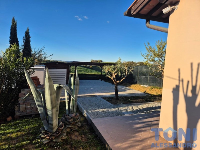CERRETO GUIDI versante Empolese: in posizione collinare e panoramica, proponiamo una bellissima villetta libera su tre lati. L'abitazione si sviluppa tutta al piano rialzato come le cosiddette "viareggine", ed è composta da soggiorno cucina unico ambiente, camera matrimoniale, cameretta/studio, bagno e ripostiglio. Dall'abitazione si accede ad un ampio giardino circa 300 metri quadri, con accesso per ricovero auto. Riscaldamento e raffreddamento a pavimento. C.E: C. In esclusiva. 285.000 €
