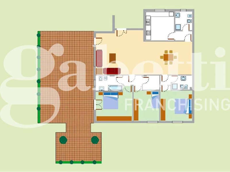 L'attico si apre su un accogliente doppio salone, ideale per momenti di relax e convivialità, una cucina abitabile completamente attrezzata che invita a sperimentare nuove ricette e a condividere pasti in compagnia. Le tre camere da letto offrono privacy e comfort, mentre i tre bagni garantiscono praticità e funzionalità per tutta la famiglia.