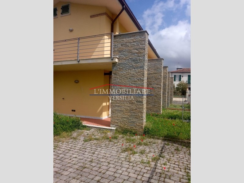 Avenza a circa 2 km da Marina di Carrara si propone porzione di trifamiliare angolare di 110 mq su 2 livelli immersa nel verde ed in posizione soleggiatissima. L'immobile, di recente costruzione, non è mai stato abitato. Dal cancelletto d'entrata si passa, tramite giardino di proprietà, direttamente dentro casa nel soggiorno ampio. Adiacente cucina abitabile, dispensa e bagno di servizio; Al primo piano camera matrimoniale con balcone, camera doppia, balcone e bagno. Possibilità di terza camera. All'esterno ampio giardino di 140 mq con portico di 34 mq e posti auto con cancello elettrico.
