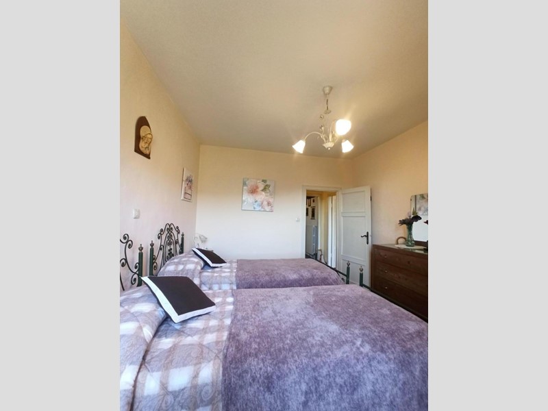 La casa, mantenuta in eccellenti condizioni e con una vista meravigliosa, vanta tre camere da letto matrimoniali e una cameretta o studio, un ampio e luminoso salone ideale per accogliere familiari e amici, e una cucina abitabile completa di camino e dispensa, il tutto su due livelli principali.