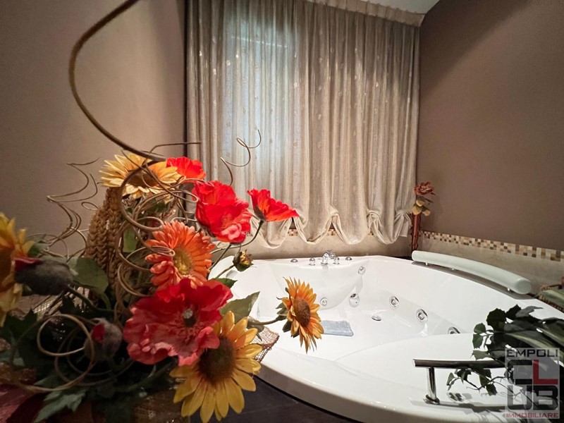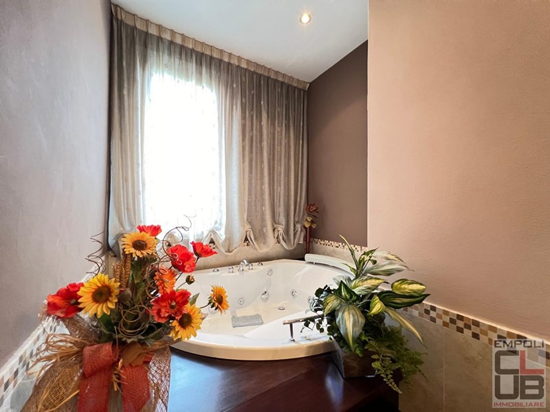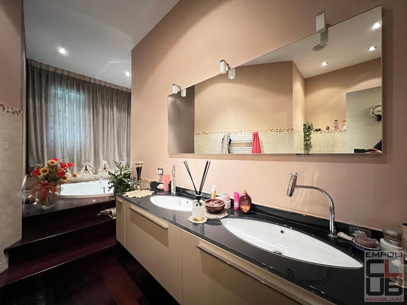 Empoli - Rif. F/0659 - PREZIOSO E COLLOCATO NEL VERO CUORE DELLA CITTADINA, A POCHI METRI DAL CENTRO STORICO E DALLA STAZIONE FERROVIARIA. IL SOGNO DELL'AMPIA METRATURA DA GODERSI TUTTA SU UN UNICO LIVELLO. IN ZONA RESIDENZIALE A FORTE VOCAZIONE SIGNORILE, DISTINTO APPARTAMENTO COMPLETAMENTE RISTRUTTURATO POSTO AL PIANO TERRA DI PIU' AMPIO EDIFICIO BIFAMILIARE, LE CUI PARTI COMUNI COME TETTO E FACCIATE SONO STATE APPENA ULTIMATE. TOTALI MQ 180 LORDI DI CIVILE ABITAZIONE CON CIRCA MQ 100 DI SPAZI ESTERNI FRA RESEDE E GIARDINO PRIVATO, OLTRE INFINE IL GARAGE PERTINENZIALE FUORI TERRA (MQ 20). La distribuzione degli spazi: al piano terra accesso pedonale e carrabile privato da resede laterale fronte est. Qui il portone principale è coperto da tettoia in cemento armato e legno pregiato. In questa zona è possibile creare una piccola area dedicata ai motocicli, perchè baricentrica fra l'ingresso al garage e l'ingresso all'unità immobiliare principale. L'abitazione è così costituita: ampio ingresso con mobile guardaroba sulla destra ed area relax soggiorno sulla sinistra; a seguire una cospicua zona pranzo con cucina e dispensa (entrambi gli ambienti con accesso al giardino privato), a seguire piccolo bagno per ospiti. Un curioso angolo studio, fa da primo filtro alla zona notte; quest'ultima ben disimpegnata vede presenti due camere di oltre mq 20 cad. una camera media, e due ulteriori bagni, uno dei quali vera perla dell'abitazione in quanto dotato di arredi firmati e vasca idromassaggio di qualità, contornata ed ornata in legno pregiato. Attiguo allo studio un vano lavanderia cospicuo e comodo che pernette di accedere all'esterno sul resede fronte ovest, ed al retro del locale garage trasformato in piccolo angolo fitness coperto. Funzionalità qualità e privacy si fondono in questa "CASA" adatta anche ad essere frazionata in due unità distinte. CLASSE ENERGETICA G IPE 160.00 TRATTATIVA RISERVATA. ULTERIORI INFORMAZIONI SOLTANTO IN AGENZIA