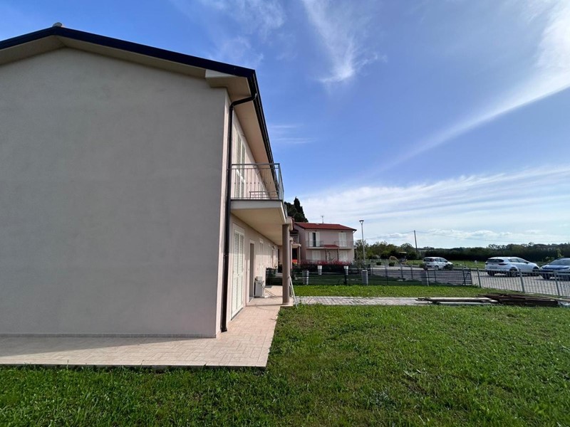 Il tutto è corredato di giardino privato su due lati, due posti auto privati, impianto fotovolataico e predisposizione di climatizzatore.