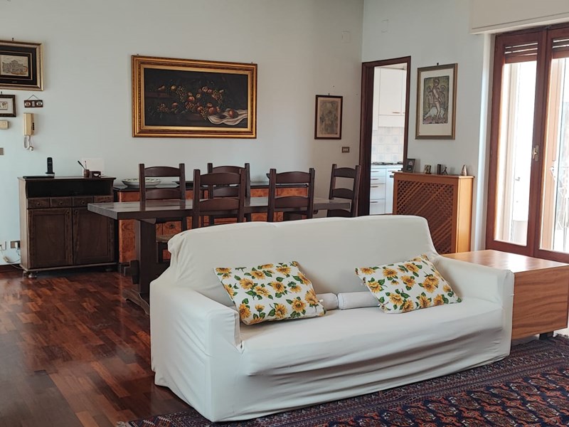 L'appartamento ha l'ingresso su un ampio salone con finestre, uscita su balcone e vista Etna. La cucina è