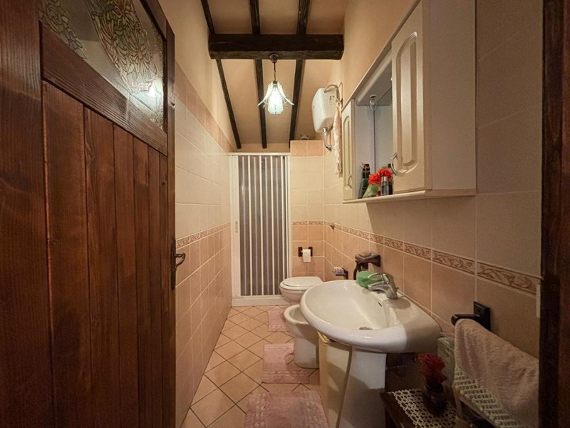 L’immobile ci accoglie al piano terra con ingresso dove troviamo un tipico camino in pietra, travi e travicelli a vista, cucina con accesso diretto al giardino e bagno di servizio con doccia e finestra.