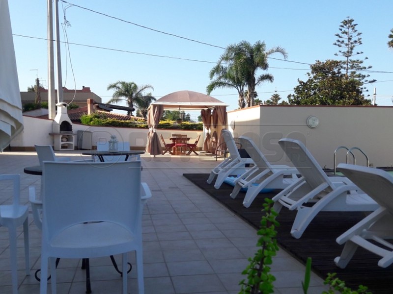 La villa insiste su un lotto di 1350 mq ed è disposta su due livelli. Al piano terra troviamo due appartamenti di 45 mq di cui uno con veranda esterna ed uno di 69 mq mentre al primo piano troviamo due appartamenti di 45 mq di cui uno con veranda esterna ed uno di 69 mq, è presente anche una depandance di 48 mq distaccata dalla villa. Tutte le camere sono dotate di climatizzatori. All’esterno è presente un solarium attrezzato ed una piscina.