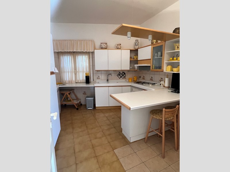 Ingresso, cucina, ampio e luminoso salone, due camere da letto, due bagni e balcone con vista mare.