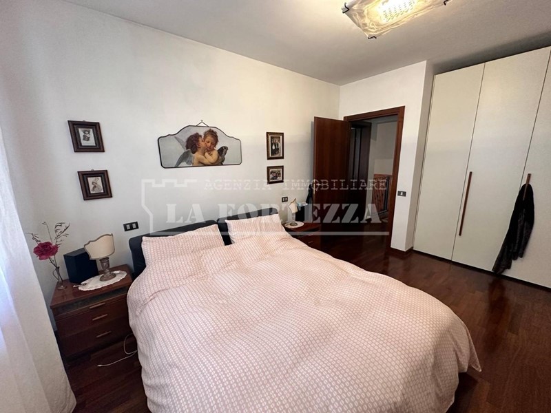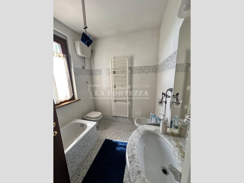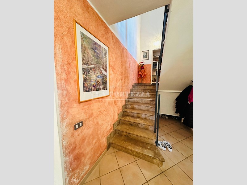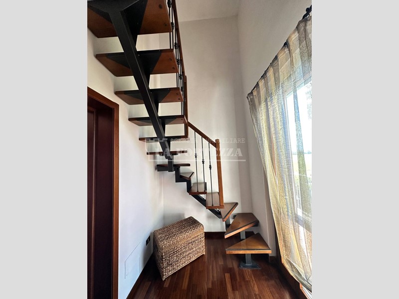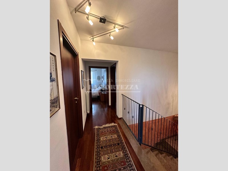 TITIGNANO: ottima villa bifamiliare di recente costruzione, disposta su due livelli oltre sottotetto rifinito a civile abitazione e con giardino di circa 300 mq. che si estende su tre lati dell' abitazione. Internamente composta al piano terra da ingresso in soggiorno, cucina abitabile, garage (attualmente adibito a studio) e bagno di servizio finestrato; da scala elegante interna si accede al piano primo dove il disimpegno notte serve una camera matrimoniale, due camere singole, due balconi ed il bagno principale.
