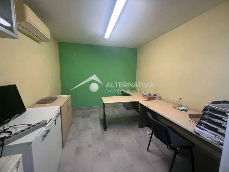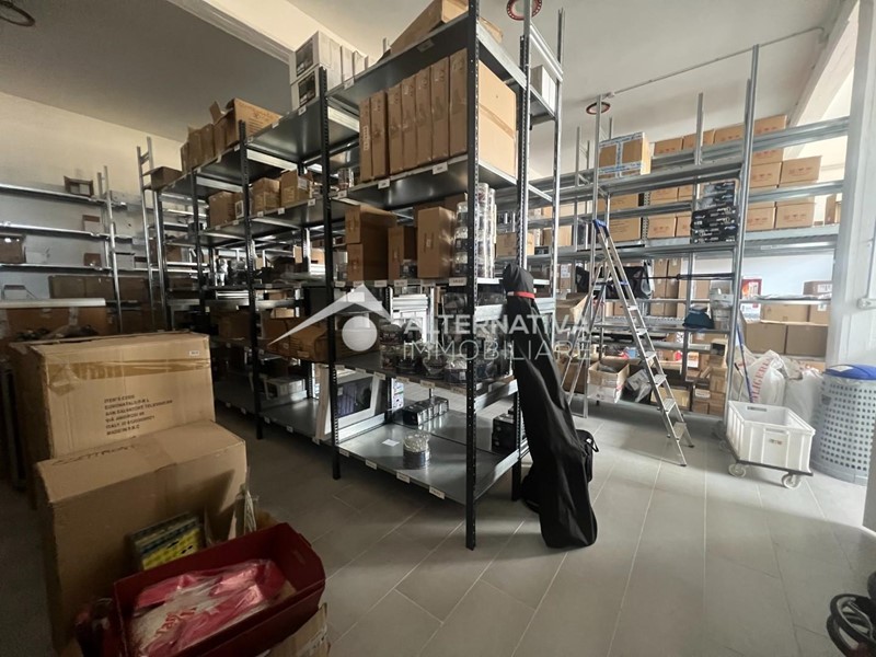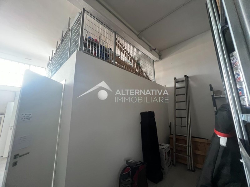 Il capannone prevede un grande open space al momento adibito a magazzino, un soppalco, un ufficio climatizzato e un bagno con antibagno.