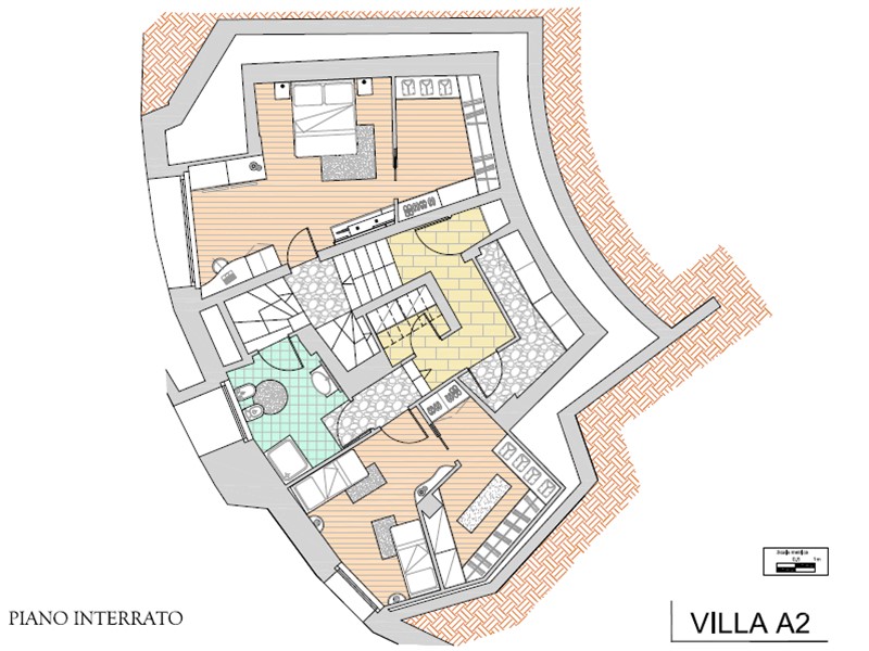Al piano inferiore sono presenti due camere da letto con ampie cabine armadi e ulteriore bagno finestrato.