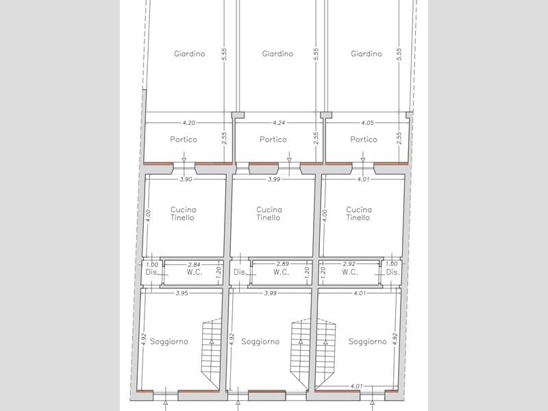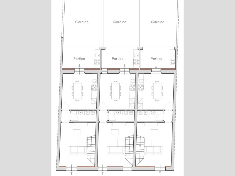 Nel cuore di Marina di Carrara, a pochi minuti a piedi dal mare, nuova costruzione di bei terratetti indipendenti, con diverse divisioni interne, con entrata su piano terra, primo piano e piano sottotetto. Al piano terra troviamo sala con angolo cottura o cucina abitabile con accesso allo spazio esterno composto da resede e giardino, e bagno; al primo piano troviamo due camere ed un bagno., mentre nel sottotetto si ha una cameretta e un bagno.