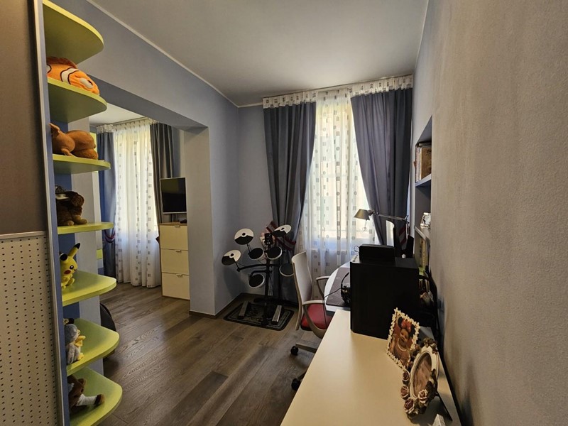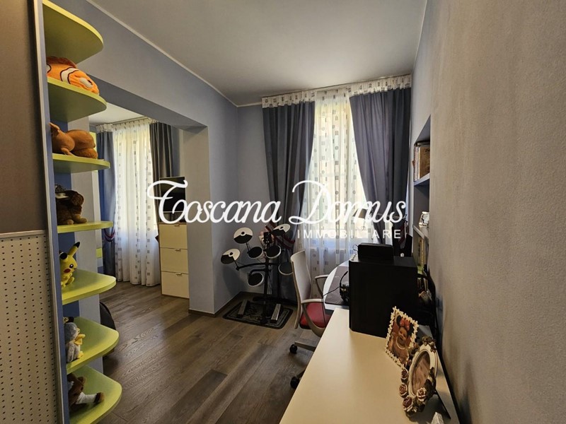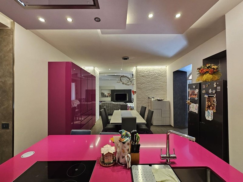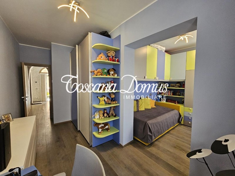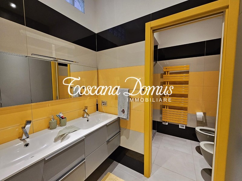 L'appartamento, che gode di un bell'ingresso indipendente attraverso un resede privato recintato, dove troviamo anche un bellissimo e caratteristico pozzo in muratura ed un esotico albero proveniente dall'Argentina, si disloca su unico livello con una planimetria che volge lo sguardo all'innovazione e alla complicità familiare. All'interno della casa troviamo la zona ingresso dove la proprietà ha ricavato un bagno finestrato per gli ospiti, completo di sanitari e box doccia, oltre ad comodo e capiente ripostiglio, un bellissimo e ampio open space di circa 50 mq dove è presente la cucina in stile americano con grande isola con zona cottura, lavello e zona snack, mobilio su misura con dispensa nascosta ed un bel tavolo allungabile che fa da collegamento tra la zona pranzo ed il salone di rappresentanza che affaccia direttamente sul suggestivo porticato abitabile e sul resede di proprietà, ai quali possiamo accedere da due porte finestra. Nella zona notte, invece, troviamo 4 ampie camere da letto, una delle quali gode dell'uso di un bagno privato ed il bagno principale, caratterizzato da una doppia porta che divide il lavabo dai sanitari e la doccia creata a tutta parete.