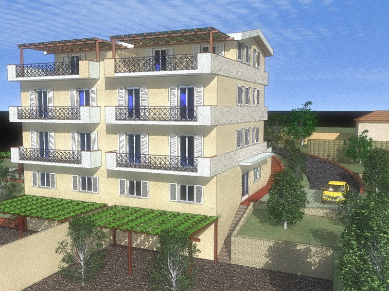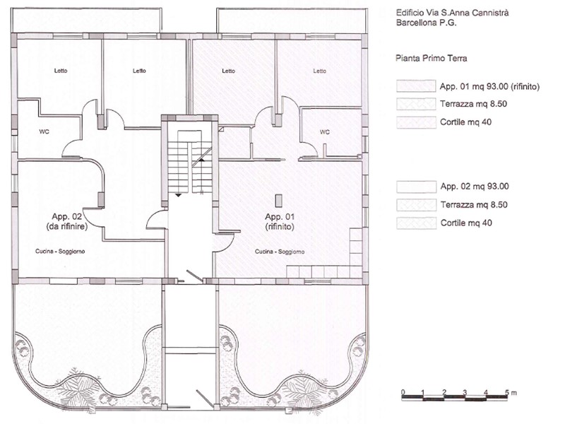 Al piano terra troviamo due appartamenti, uno rifinito con cucina-soggiorno, due camere da letto e bagno, e l'altro da personalizzare.