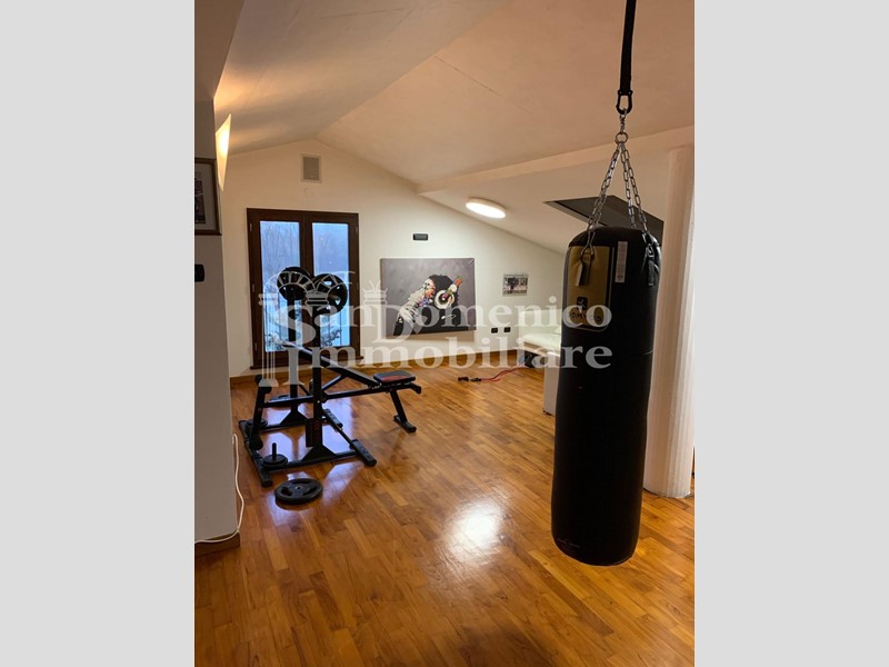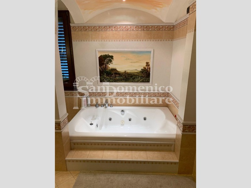 Al suo interno l'abitazione è composta da: al piano terra ampio salone, cucina abitabile, bagno con doccia e vasca idromassaggio, ripostiglio/dispensa e locale lavanderia. Tramite scala interna raggiungiamo il piano primo dove troviamo tre camere, di cui una con cabina armadio e tre bagni; al piano secondo mansarda pluriuso di circa 60 mq con ulteriore bagno. Completa la proprietà una depandance esterna di circa 70 mq composta da 4 vani più un bagno di servizio e due grandi e comodi garage.