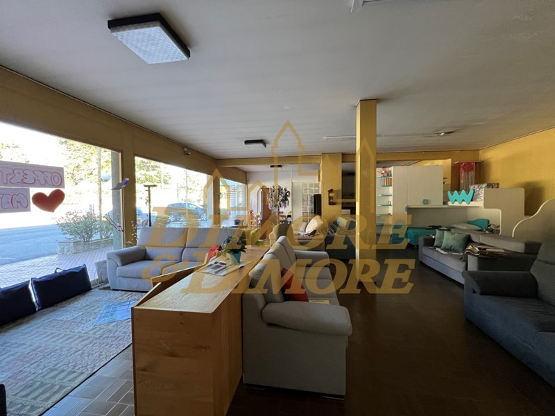 Spaziosi locali di circa 500 mq con vetrine panoramiche, magazzino e locali deposito, oltre a una tettoia di circa 270 mq.