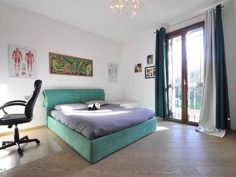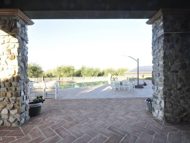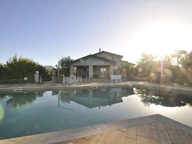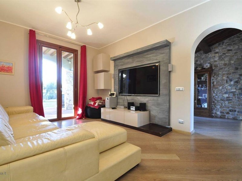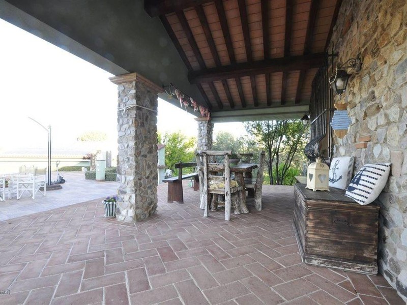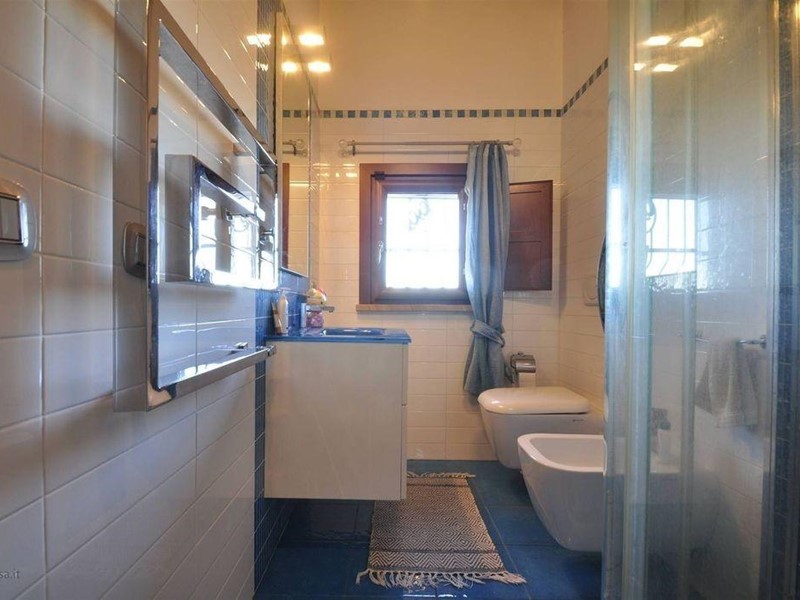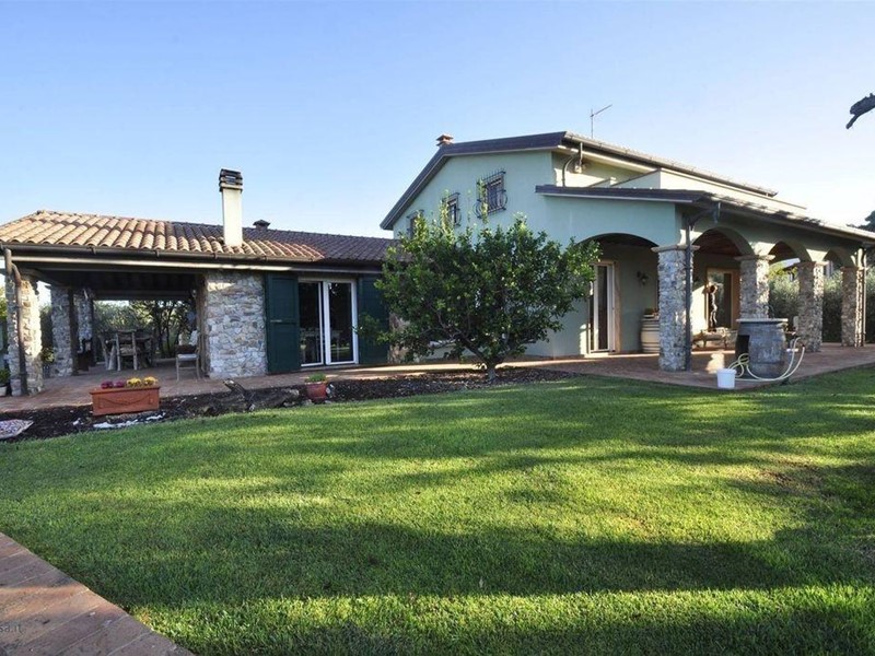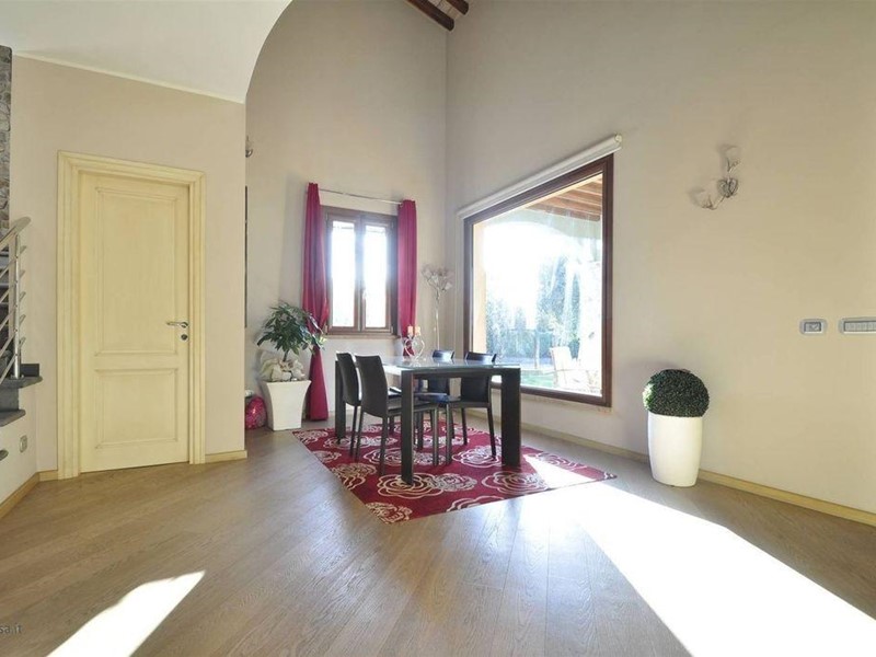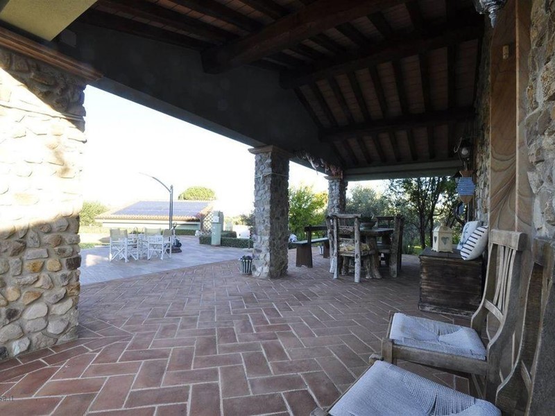 Lasciando la strada statale si percorrono poche centinaia di metri e si giunge alla villa con il suo cancello automatico di accesso. Si entra nell'ampio pianeggiante giardino privato prospicente la villa, percorrendo il curato vialetto in pietra si giunge all'ingresso del piano terra. Alti porticati circondano l'intera zona giorno caratterizzata da ampie finestre che donano luce agli interni. Dal portone d'ingresso blindato si entra nella grande zona giorno caratterizzata da altezza doppia e da ampi spazi. La cucina è molto grande e accessoriata; al piano terra si trova una grande camera matrimoniale con il suo servizio e il locale caldaia. Salendo una comoda scala interna in pietra serena e acciaio si giunge al primo ed ultimo piano in parte affacciato sulla zona giorno per questo molto luminoso. Tre camere matrimoniali e un bagno di servizio completano la zona notte calda e accogliente.