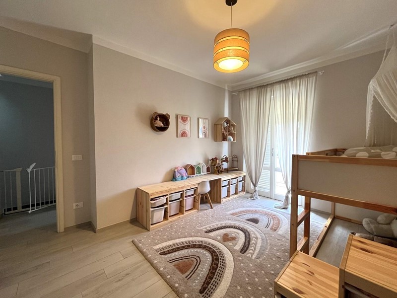 Al piano superiore si trova la zona notte dove ci sono 2 camere grandi, una delle quali dotata di stanza armadi, ed una cameretta, e un bagno completo con doccia.