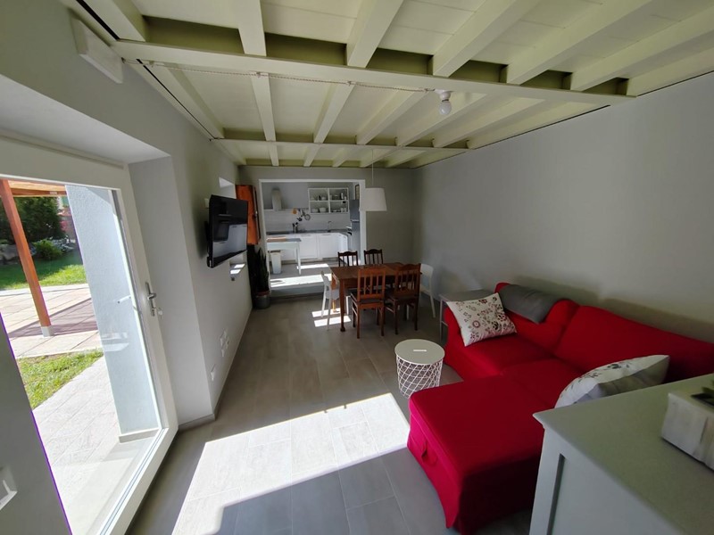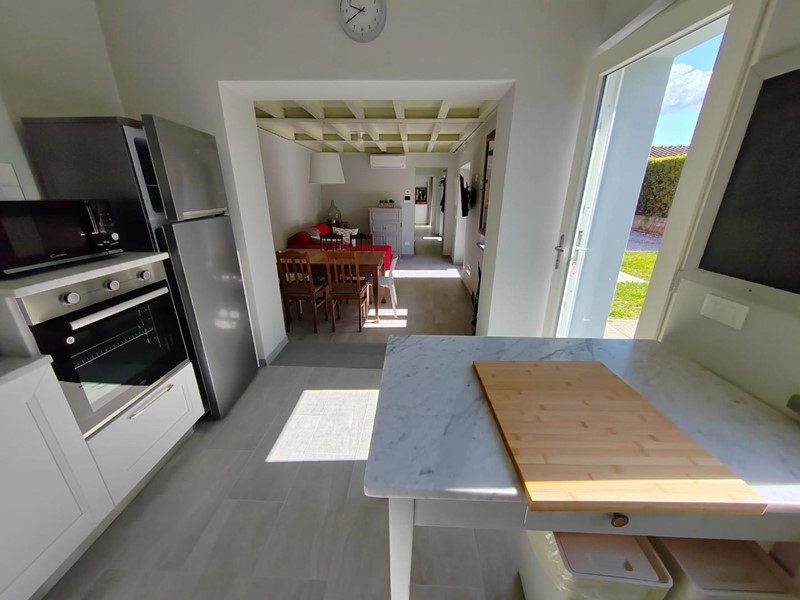 La villetta è disposta su due livelli fuori terra, oltre al giardino con zone esterne attrezzate per soggiornare e disporre di pranzi e cena all'aperto.