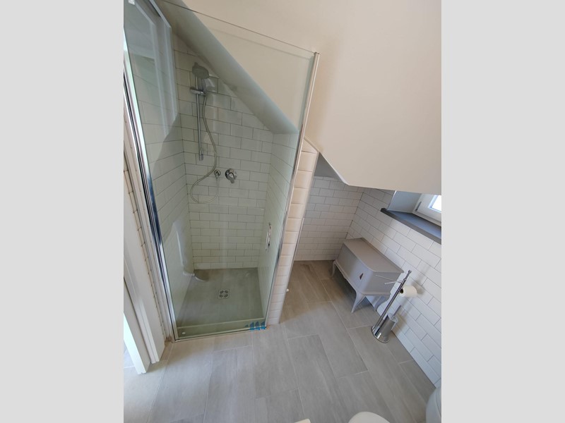 Al piano superiore che si accede anche da scala esterna abbiamo due camere matrimoniali servite da una grande bagno con doccia.