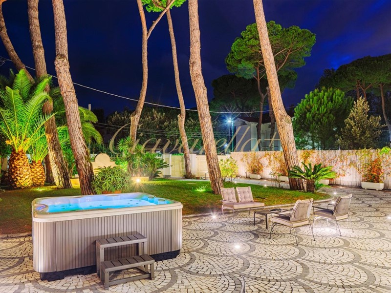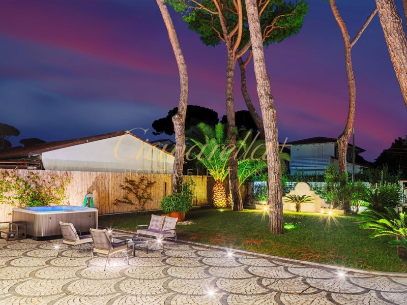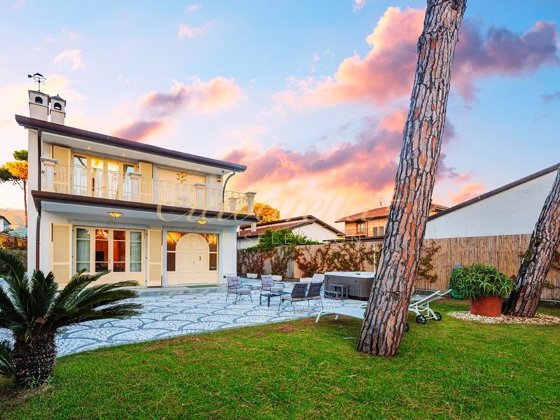 Vittoria Apuana a soli 300 metri dal mare. Prestigiosa villa di 350 mq di recente costruzione con giardino su quattro lati di ca 800 mq. Composta: al piano terra grande soggiorno con sala pranzo, cucina abitabile con accesso nella zona pranzo esterna, bagno. Al primo piano tre camere con bagni privati e ampie terrazze. Mansarda con camera/studio. Taverna con vari locali e scanafosso. Villa dotata di tutti impianti di ultima generazione, domotica, aria condizionata, allarme. Giardino con grande parchegio e jacuzzi.