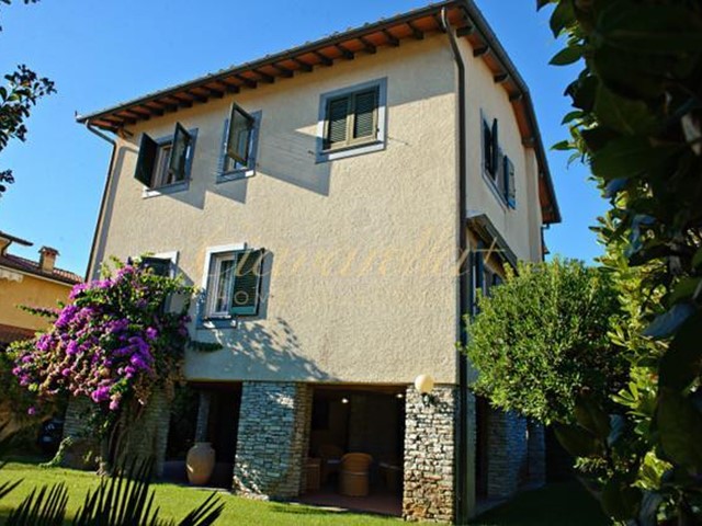 Forte dei Marmi centro, posizione riservata a circa 500 metri dal mare e a due passi da tutti servizi. Villa singola libera su quattro lati con grazioso giardino e posti auto. Villa di circa 200 mq con loggiato a piano terra di 100 mq sul lotto 500 mq. Internamente composta: al piano terra loggiato con accesso al vano scale dal quale si raggiunge il piano primo e secondo. Al piano primo troviamo disimpegno, soggiorno, cucina, camera e bagno. Al piano secondo disimpegno, tre camere, tre bagni e stanza armadi. Attraverso una scala esterna è infine possibile accedere ad una terrazza ricavata su porzione della copertura dell’immobile dalla quale si gode una bella vista sulle Apuane.