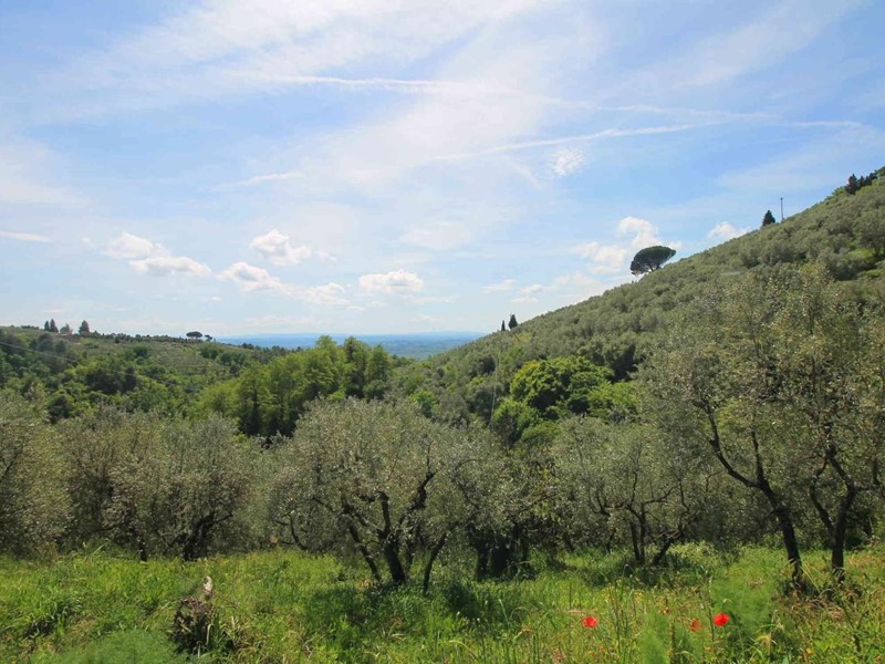 Inoltre la proprietà comprende un una ampio giardino e terreno circostante di circa mq 12.000 con circa 220 piante di ulivo e una piccola parte di bosco.