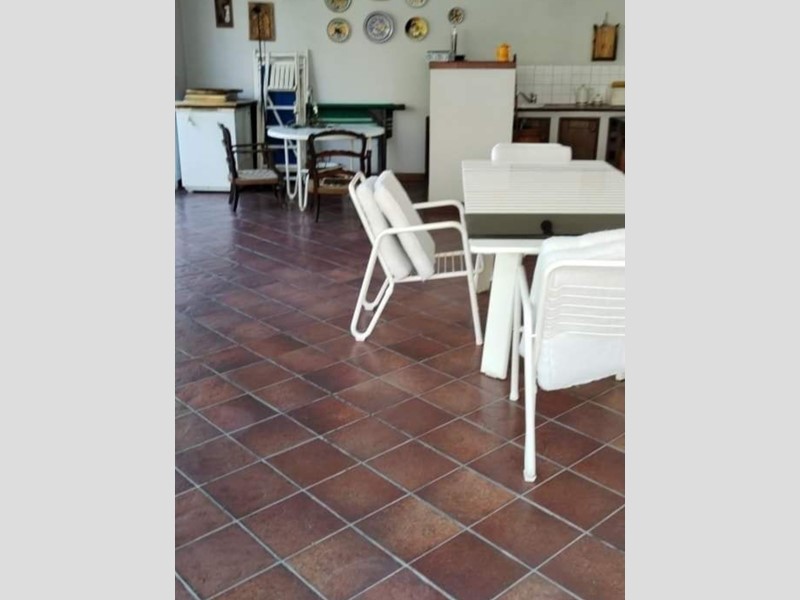 Praticamente sul mare, porzione di bifamiliare, posta al piano terra di 110 mq abitabili, composta di grande soggiorno - cucina in veranda chiusa con ampia superficie luce con vetrate, sala, camera matrimoniale, camera singola, cucinotto, bagno, con possibilità di reinventarsi spazi interni, ricreando ulteriore servizio e possibilità di ampliare ulteriormente la camera singola.
