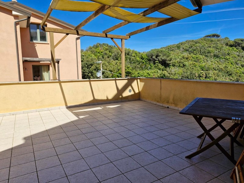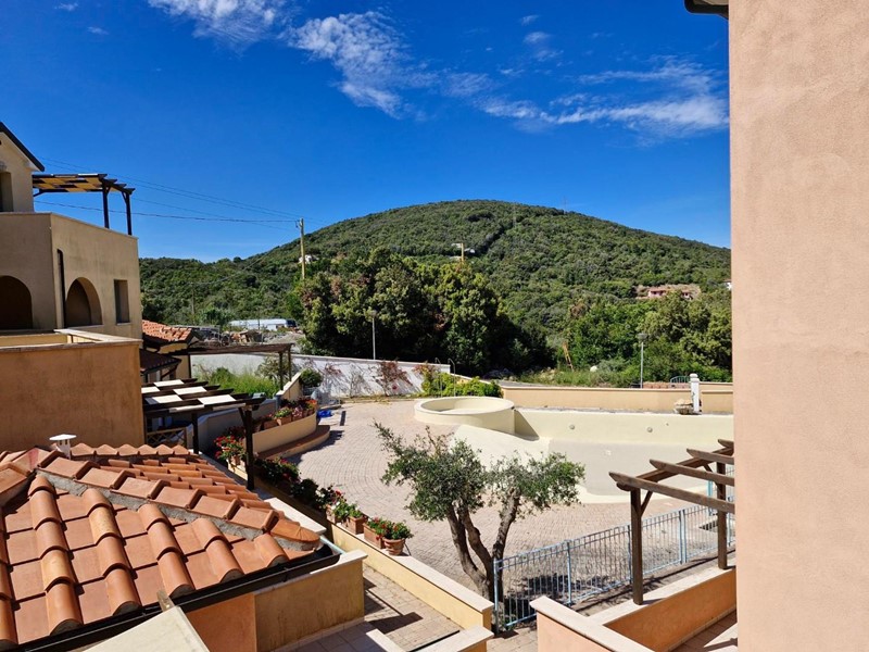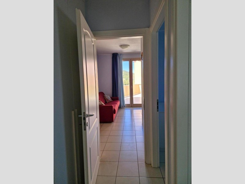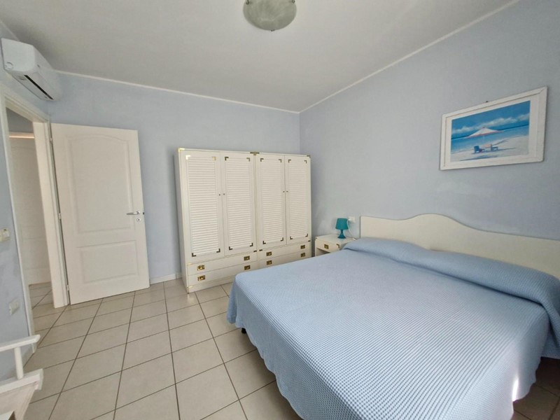 Grazioso appartamento in residence con piscina, posto al piano primo di mq. 61 netti composto da ampio soggiorno con divano letto ed angolo cottura con porta finestra sulla terrazza pranzabile di mq. 30 circa, disimpegno zona notte con armadio, bagno con doccia e finestra, camera matrimoniale, camerina e posto auto nella corte condominiale.
