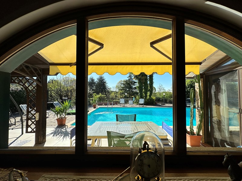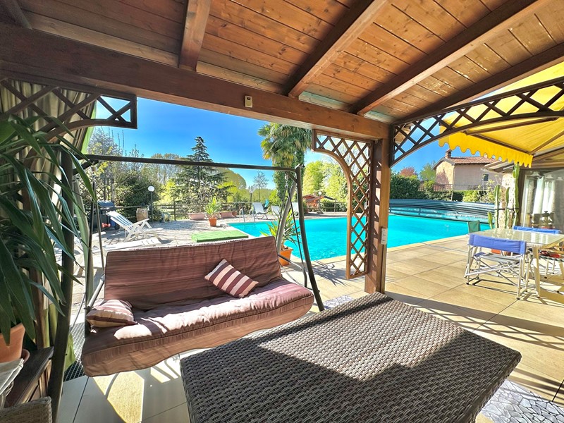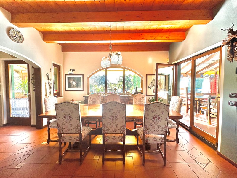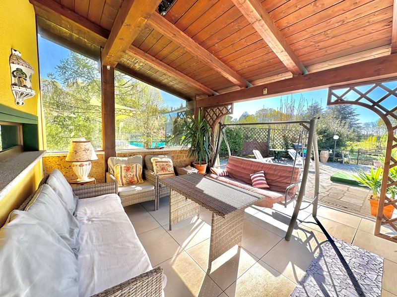 Al piano terra troviamo un ampia zona giorno resa luminosissima ed accogliente dalle grandi vetrate che danno sull'esterno, una cucina molto spaziosa con annessa sala da pranzo, una camera matrimoniale ed un bagno. A rendere il ancora più straordinario troviamo una veranda coperta e una zona relax invece sotto il grande porticato. Al piano superiore accediamo invece alla zona notte composta da altre due camere matrimoniali, di cui una dotata di cabina armadio e bagno privato in suite senza contare il meraviglioso terrazzo che affaccia sulla piscina.