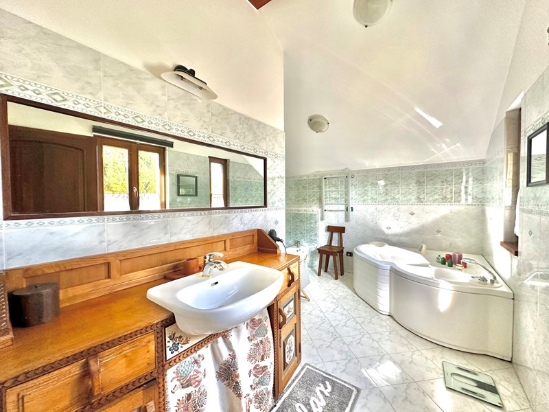 Il piano seminterrato è composto da una grande cantina suddivisa in lavanderia, palestra e sauna. Box auto doppio e giardino di 2500 m.