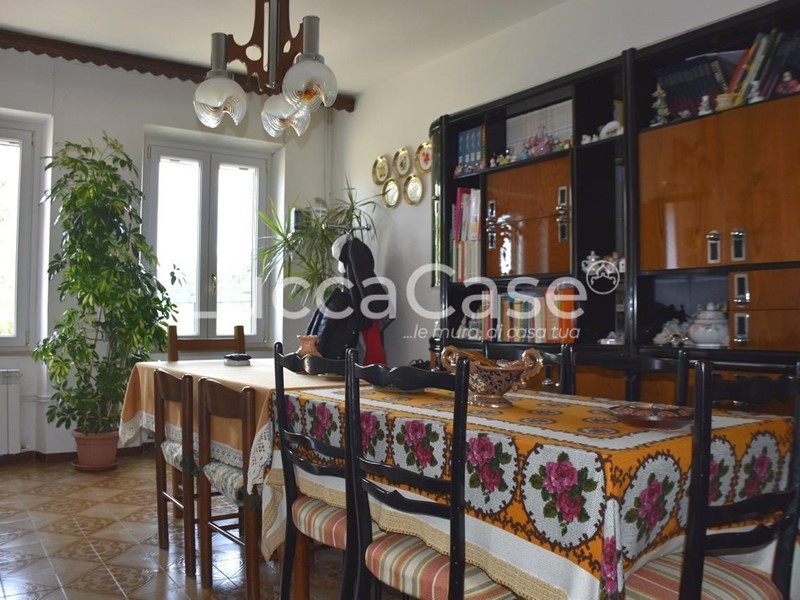 Al primo piano l’ingresso ci introduce su un lungo corridoio alla cui sinistra troviamo un’ampia sala e in fondo ci conduce ad un tinello con porta veranda sull’esterno e a una piccola cucina con camino a legna.