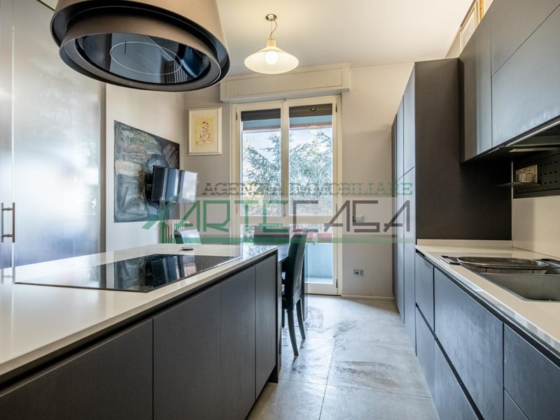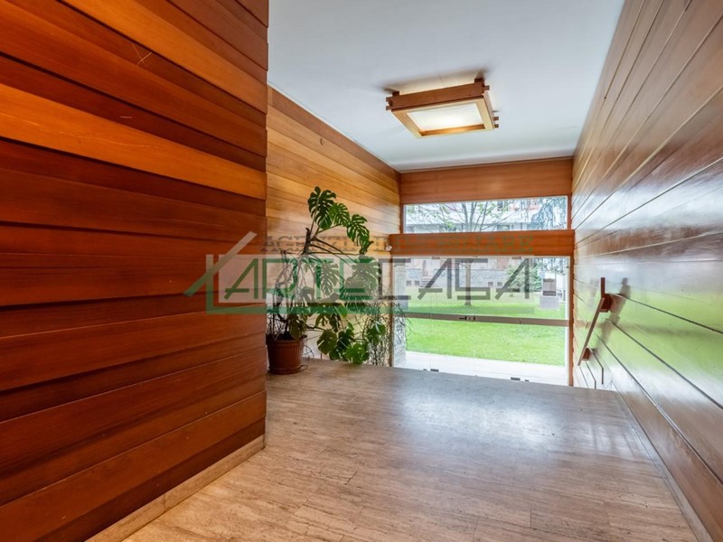 L'ingresso dell'appartamento si apre in un ampio e luminoso salone, che include anche una cucina pranzo, dalla quale si accede ad un balcone, che offre una piacevole vista sul verde circostante. L'appartamento dispone anche di uno studio con balcone verandato, perfetto per lavorare in smart working o per essere utilizzato come terza camera da letto. La zona notte è composta da un disimpegno con ripostiglio e angolo armadi, che conduce alle DUE CAMERE MATRIMONIALI ampie e luminose e ai doppi servizi, entrambi finestrati e di cui uno con vasca e uno con doccia, i quali garantiscono una buona areazione e luce naturale. L'immobile è stato completamente ristrutturato nel 2020, offrendo un ambiente moderno e confortevole. Questo appartamento rappresenta un'opportunità ideale per chi desidera vivere in un contesto signorile, circondato da aree verdi, ma comunque vicino alle comodità della città. Classe Energetica: G. Rif. AC7346.