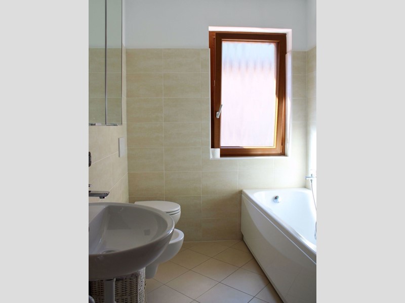 L'appartamento è dotato di riscaldamento a pavimento, pannelli solari per l'acqua calda sanitaria e coibentazione a cappotto. Box doppio di pertinenza (23 mq) e cantina (14 mq)