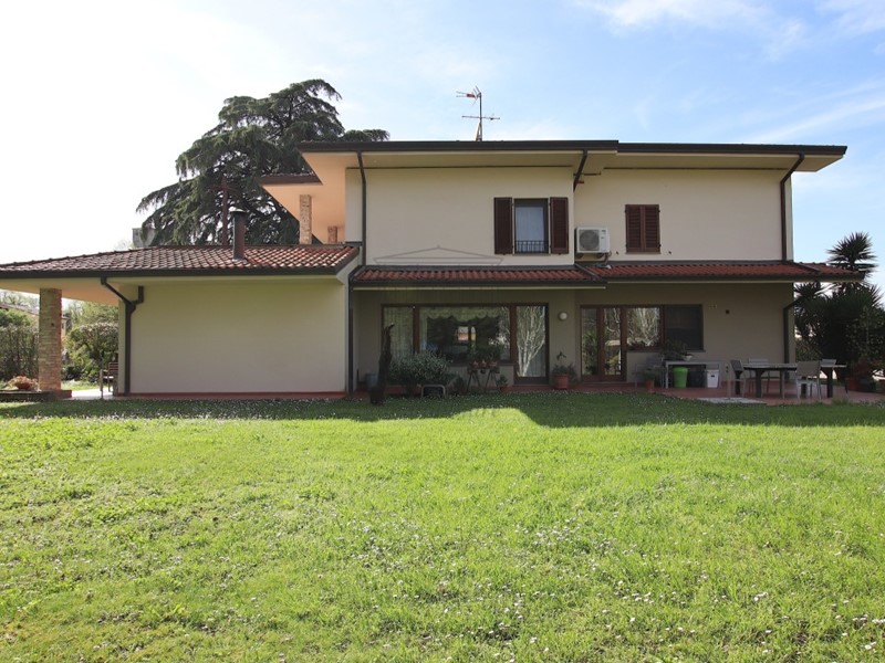 IA03827 ELEGANTE VILLA PARI AL NUOVO in prima periferia. La villa è collocata centralmente ad un quartiere a Nord della Città a circa 5 km. La zona è servita frequentemente da mezzi pubblici. Costruita circa 20 anni fa la villa si presenta in perfette condizioni di manutenzione,pari al nuovo. Collocata all'interno di un ampio giardino recintato di circa mq. 2.500 ed elevata su due piani fuori terra oltre mansarda e cantina.Presente sul giardino un grande fabbricato accessorio ad uso di garage per 4 auto di mq.100.Internamente la villa denota una ricchezza di costruzione sia per gli ampi spazi disponibili ( circa mq. 500 abitativi complessivi) ,sia per gli ottimi materiali usati per la sua rifinitura. La zona giorno si apre su un salone di ingresso al lato del quale troviamo una grande sala vetrata su portico ,una grande sala da pranzo, una ampia cucina abitabile, un bagno di servizio. Al piano primo, raggiungibile attraverso una bellissima scala in pietra un grande atrio disimpegna 2 camere matrimoniali con accesso diretto a ampio balcone,una camera doppia,due stanze da bagno ciascuna con doccia e vasca. Superiormente una zona soffitta di ottima altezza e interamente rifinita serve da stanza hobby,palestra,magazzino. Presente una grande taverna idonea per cene con amici. Il tutto è pari al nuovo sia a livello di finitura,sia a livello impiantistico.Classe energetica D. Richiesti €.750.000,00 Si avvisa che per motivi di privacy la posizione indicata non corrisponde alla esatta posizione del fabbricato.