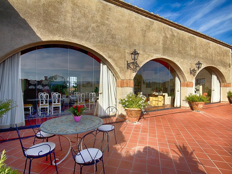 Cevoli - Casciana Terme Lari A poca distanza dall'aeroporto di Pisa e dal mare, troviamo questa meravigliosa residenza d'epoca di lusso, recentemente ristrutturata, disposta su 2 livelli caratterizzata da una grande terrazza di mq. 200 circa che domina la vallata. Da qui si ammira il grande salone attraverso grandi aperture ad arco; in questo ambiente è presente un caminetto. Attraversando questo sontuoso salone, raggiungiamo un altro piccolo salotto e un disimpegno che ci conduce nella cucina abitabile, tre camere da letto con due bagni privati. Al piano sottostante abbiamo un grande salone, ideale per signorili ricevimenti, con una grande cucina industriale, altre due camere da letto e due bagni. Il tutto ristrutturato con grande rispetto per la struttura originaria. Il complesso gode di privacy e tranquillità. Il tutto è corredato da un terreno di circa 3500 mq dove è possibile realizzare una grande piscina, una cantina interrata ed un locale dalla vista imperdibile che ospita una vasca idromassaggio, un bagno ed un forno a legna. Disponibilità immediata.