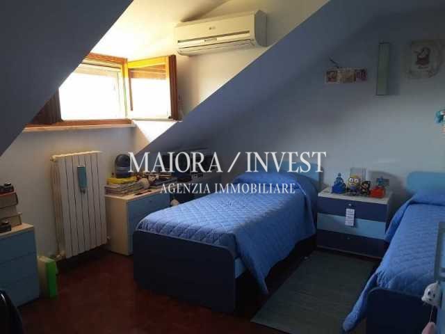 ASCOLI PICENO - Poggio di Bretta, appartamento posto al secondo e terzo piano sottotetto senza ascensore, collegati internamente da una comoda scalinata e forniti anche di due ingressi autonomi. L'immobile ha una superficie complessiva di mq 162 di cui mq 60 posti al secondo piano con ingresso su ampio soggiorno, cucina abitabile, un bagno con antibagno con doccia e ad areazione forzata oltre due balconi per un totale di mq 12; secondo livello di mq 86 leggermente spiovente con tre camere di cui una doppia, una singola ed una matrimoniale, un bagno finestrato con vasca, un ripostiglio ed un terrazzino di mq 4.4. Completa la proprietà un garage posto al piano sottostrada di mq 21. L'edificio è degli inizi anni 90 e gode di ottime rifiniture, ha riscaldamento autonomo e impianto di climatizzazione. Importo incluso di parziale arredo su misura. Codice riferimento 227. Agenzia Immobiliare MAIORA/INVEST.