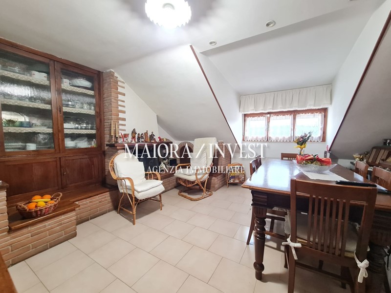 STELLA DI MONSAMPOLO DEL TRONTO (AP) - In zona tranquilla e vicina ai principali servizi, appartamento duplex posto al primo piano e secondo senza ascensore (con collegamento interno) di una piccola palazzina composta da solo 4 unità abitative. L'unità immobiliare ha una superficie complessiva di circa 190 mq. Il piano primo di mq 95 è composto da ingresso su ampio soggiorno, cucina abitabile, disimpegno, due camere da letto di cui una matrimoniale e una doppia, un bagno finestrato con doccia ristrutturato recentemente e provvisto di sanitari sospesi, ampio ripostiglio finestrato e 5 balconi soggiornabili per totali mq 25. Il piano superiore leggermente mansardato ha una superficie di circa 95 mq . Collegato al primo con comoda scala interna a chiocciola, oppure tramite un altro ingresso posto esternamente all'abitazione è composto da un ulteriore soggiorno fornito di caminetto, cucina abitabile con ampio ripostiglio, disimpegno, due camere da letto matrimoniali e un bagno finestrato con box doccia e ristrutturato recentemente. Completa la proprietà un doppio e comodo garage fornito di doppio ingresso pavimentato e finestrato di circa 40 mq. L'immobile, con esposizione Sud- Nord ed est dispone di riscaldamento autonomo, climatizzazione, infissi in legno con doppio vetro, zanzariere su tutte le finestre e tende da sole. Ottima soluzione per ampio nucleo famigliare poiché offre comodi spazi sia interni che esterni oltre ad essere limitrofo ai principali servizi della zona. Codice di riferimento 1212. Agenzia Immobiliare MAIORA/INVEST.