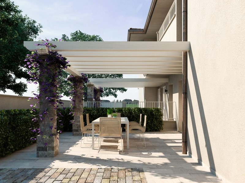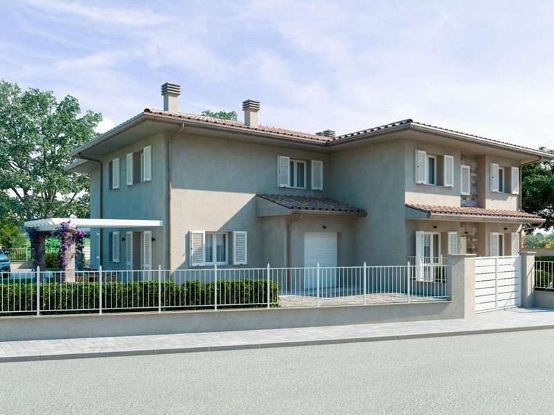 La villetta al Piano terra è composta da ingresso nell'ampio soggiorno di oltre 30 mq con pergolato esterno, cucina abitabile di circa mq. 20 con accesso al secondo pergolato e giardino esterno su tre lati di circa 250 mq. ideale per essere vissuto nella bella stagione, anti-bagno e bagno, ripostiglio e garage. La zona notte posta al piano primo è composta da camera matrimoniale con bagno privato e locale armadi oltre a terrazzo, un'ulteriore camera matrimoniale, una camera doppia e terzo ampio bagno di oltre 8 mq. Immobile completamente personalizzabile. Rifiniture di alto livello Classe energetica: A4