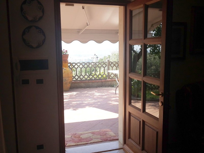 In posizione unica e panoramica, con magnifica vista mare, in contesto residenziale non lontana dai servizi, vendesi villa composta di 2 appartamenti con ingressi indipententi e comunicanti internamente tramite comoda scala interna. Piano terra composto da ingresso in soggiorno con zona cottura, 2 camere matrimoniali, bagno e locale lavanderia, porticato e taverna. Piano primo composto da ingresso, cucina, studio, salone, 2 camere matrimoniali, bagno e ampia terrazza pranzabile con splendida con vista mare. Terreno circostante recintato. Garage e cantina. Buono stato.