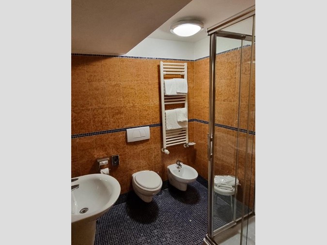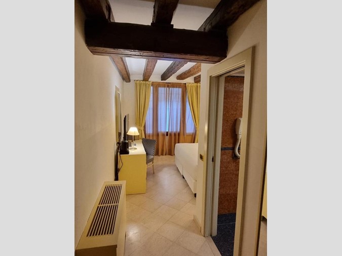 La stanza è completamente restaurata con travi a vista e possiede un bagno privato.
