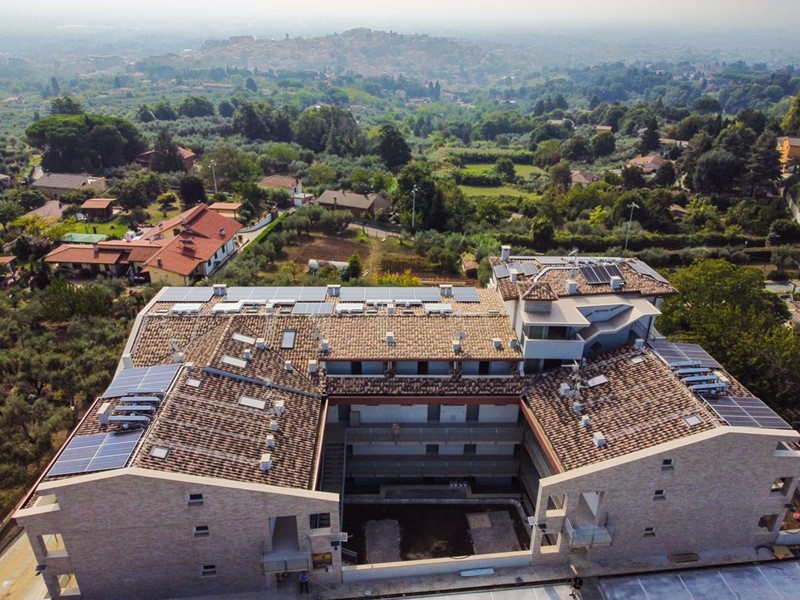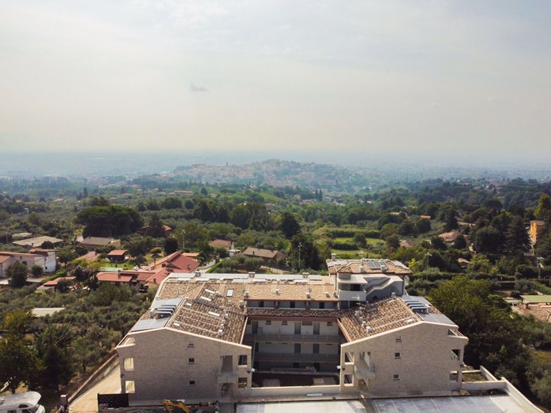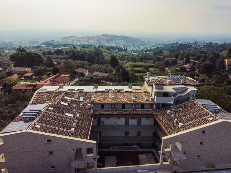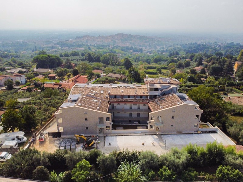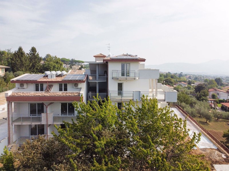 SPECIALE CANTIERE, a ridosso del centro di Velletri, in esclusiva zona signorile con posizione dominante e panoramica a 360°, sorge un nuovo e inatteso complesso residenziale: "Residence Belvedere Colle Giorgi", firmato con uno stile audace, eclettico, dinamico e funzionale, con materiali di eccellente qualità, grande cura dei dettagli e costruita nel rispetto dell'ambiente, con impianto fotovoltaico, solare termico, riscaldamento alimentato da stufa a pellet e pompa di calore.