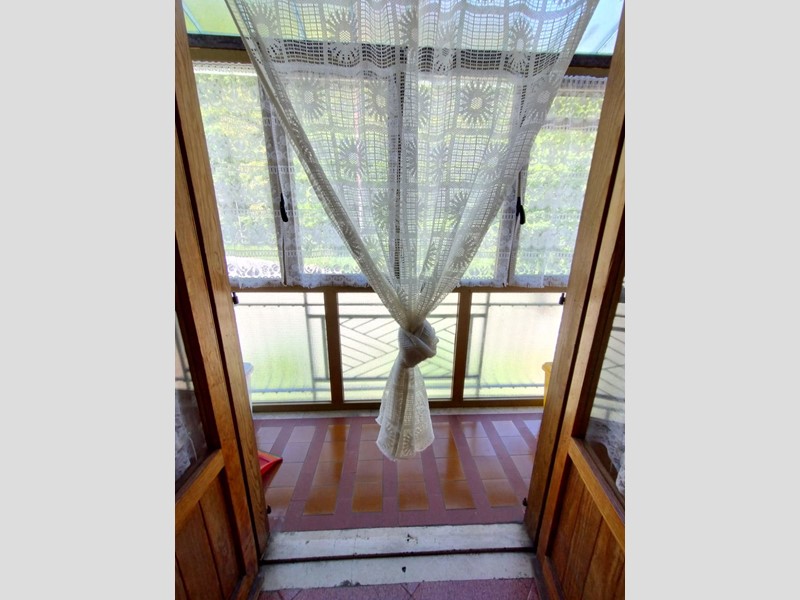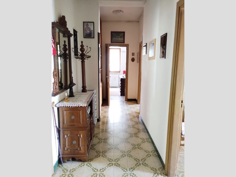 Appartamento 1°p.: ingresso, soggiorno, cucina abitabile con camino, 2 camere, bagno, 3 balconi, ampio garage. Arredato. Cl.en. G. I.p.e.>175 kwh/mq/anno.