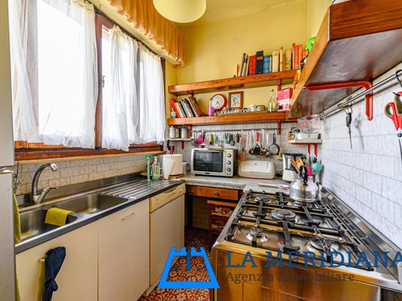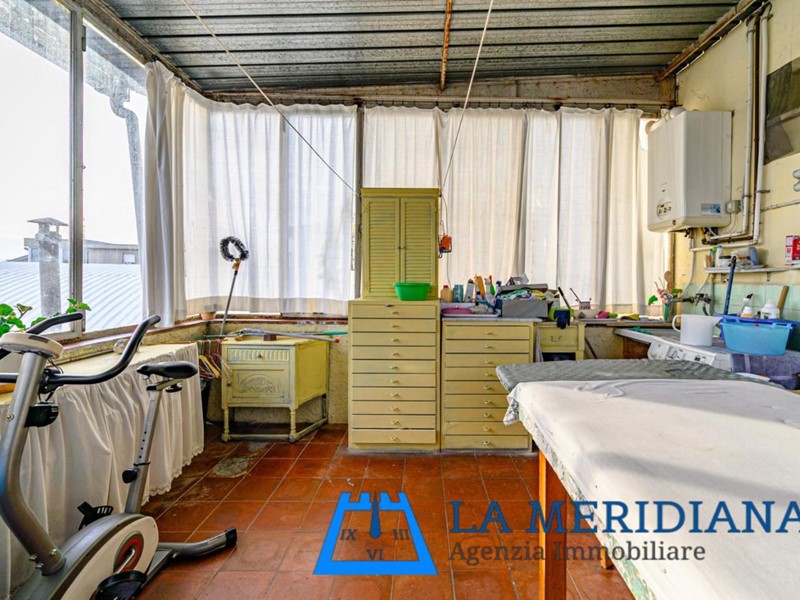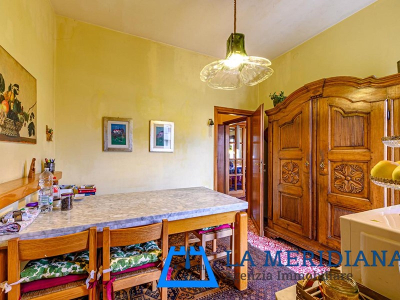 piano secondo: tinello, cucinotto, soggiorno con caminetto, ingresso, 2 camere matrimoniali, 2 bagni, ripostigli e terrazza.