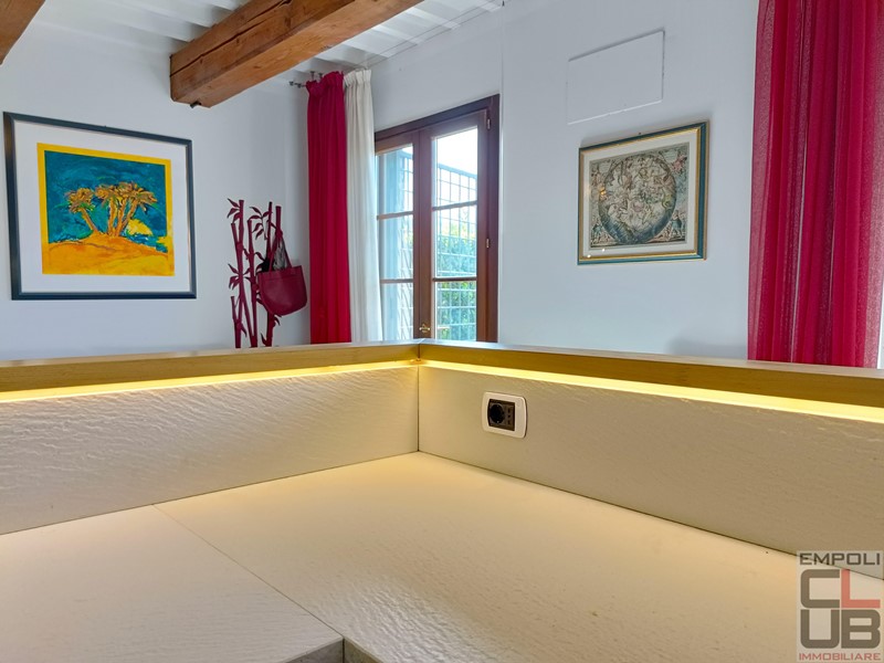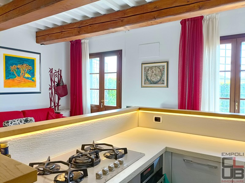 MONTELUPO FIORENTINO - RIF P/0258 - CONTESTO ESCLUSIVO A POCHI MINUTI DAL CENTRO DI MONTELUPO FIORENTINO, IN VILLA STORICA COLLOCATA ALL'INTERNO DI UN PARCO PRIVATO DI OLTRE DUE ETTARI, CON SPLENDIDO GIARDINO ALL'ITALIANA E BELLISSIMA PISCINA CONDOMINIALE. L'APPARTAMENTO IN OGGETTO, CON INGRESSO INDIPENDENTE E POSTO NELL'AREA PIU' RISERVATA DELLA VILLA, SI SVILUPPA SU TRE LIVELLI PER TOTALI MQ 95 CIRCA (MQ 65 CIRCA DI CIVILE ABITAZIONE E MQ 30 CIRCA DI TAVERNA) CON GIARDINO PRIVATO DI MQ 30 CIRCA, OLTRE GARAGE ESCLUSIVO E DUE POSTI AUTO NELLA ZONA PARCHEGGIO COMUNE. - L'IMMOBILE, VIENE VENDUTO COMPRENSIVO DI TUTTI GLI ARREDI, DI QUALITA', ALCUNI DI ESSI REALIZZATI SU MISURA DA NOTI ARTIGIANI LOCALI. - Accesso all'immobile dal giardino, ottimamente esposto e in discreta privacy. Ingresso, accogliente e luminoso soggiorno cucina, bagno. Scala di accesso per il livello inferiore, costituito da ampia taverna, (attualmente adibita a camera da letto matrimoniale informale) bagno e vano lavanderia attiguo. Al piano primo, camera matrimoniale con cabina armadio e bagno dedicato; camera singola.