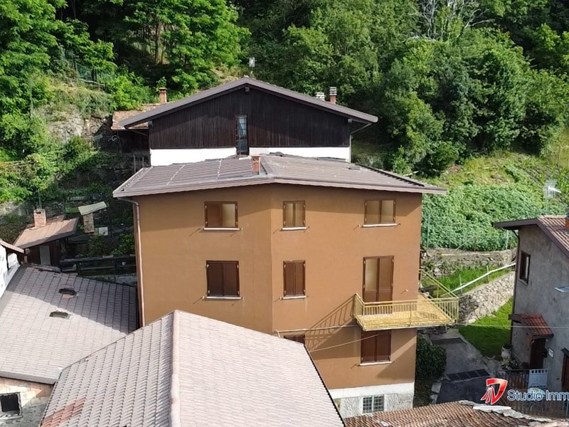Casa indipendente, libera su 3 lati, con buona vista su tutta la vallata ed esposizione solare (est/ovest/sud), suddivisa in 3 appartamenti indipendenti, uno per piano, collegati da scala interna in marmo.\nOgni appartamento presenta soggiorno, cucina, due camere, disimpegno e bagno con vasca.\nL'appartamento sito al piano intermedio è dotato di balcone.\nRaggiungibile con tutte le auto, comodo parcheggio a pochi metri.\nPiccolo appezzamento di competenza per fiori ed erbe aromatiche.\nCantine e legnaia.\n